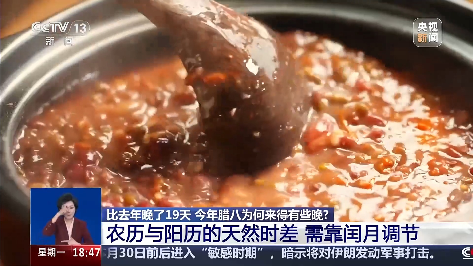 北京天文馆副研究员 杨帆:中国传统历法通过设置闰月来协调阴历与阳历的时差。按照传统农历,平年为354或355天,闰年包含384天。乙巳年是闰年,包含了一个“闰六月”。这导致从农历七月到腊月的所有节日在公历上的日期都整体向后偏移。今年腊八节便会比上一年推后约19天。