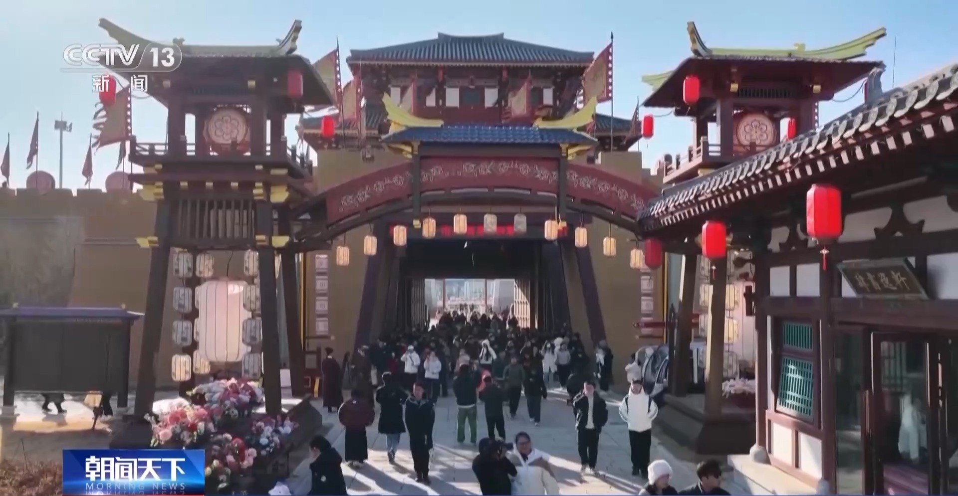 除了取景地打卡,许多影视城也纷纷发力打造沉浸式场景,让“跟着电影去旅游”升级为深度体验。山东乐陵影视城作为多部影视作品的取景地,在元旦假期推出非遗游园会,随处可见的现场演员与游客热情互动,构建起“走进片场,一秒入戏”的沉浸氛围。横店影视城的古装拍摄基地则实现了从场景沉浸到职业体验的进阶,推出时长近一小时的电影拍摄体验,场地可同时容纳百人,游客能亲身尝试导演、场记、演员等银幕前后的各类工种。