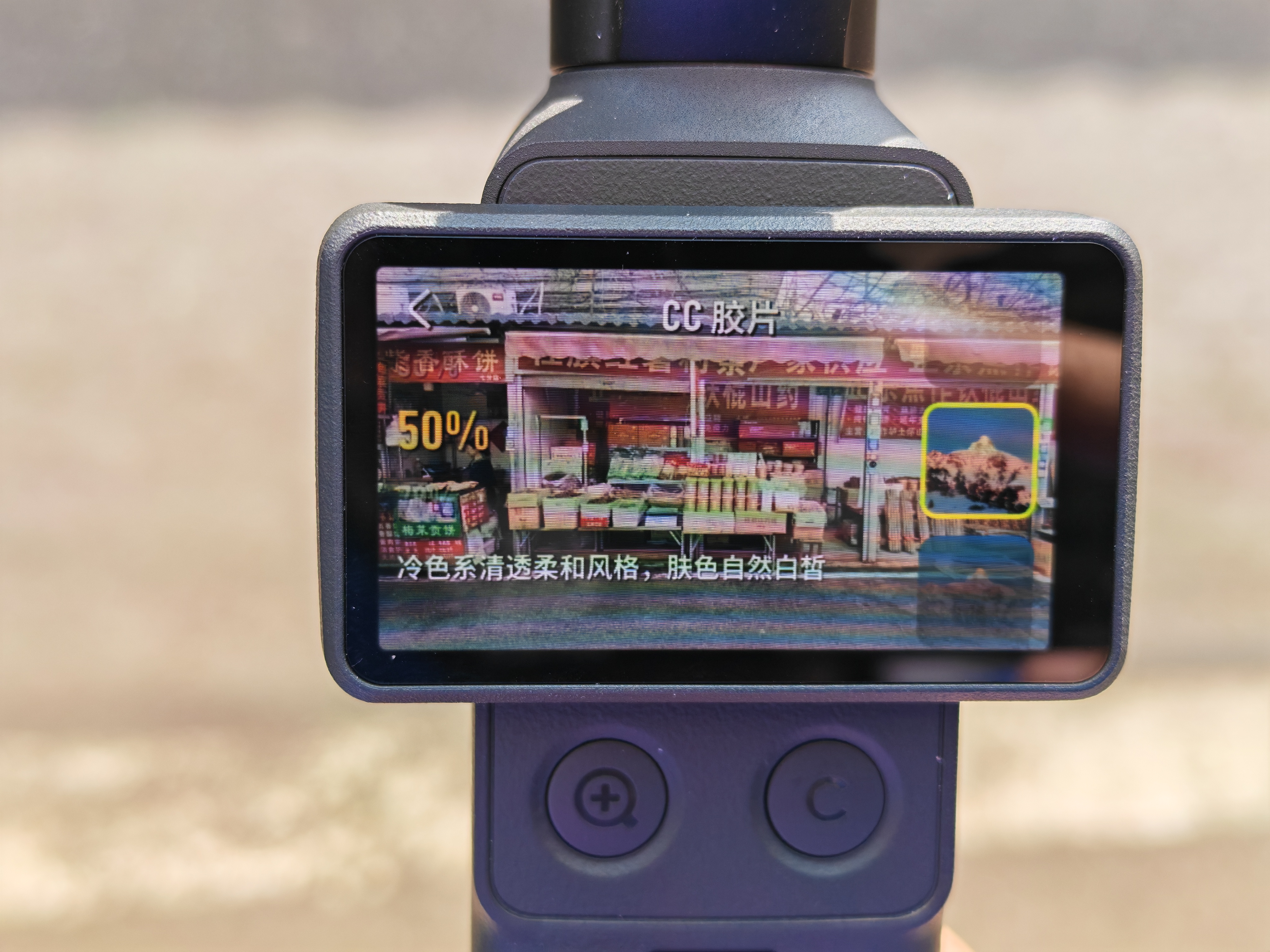 Pocket 4在视频风格化方面下了很大功夫,机内新增了CC胶片、NC胶片、清新、暖调、电影和复古6种胶片影调。