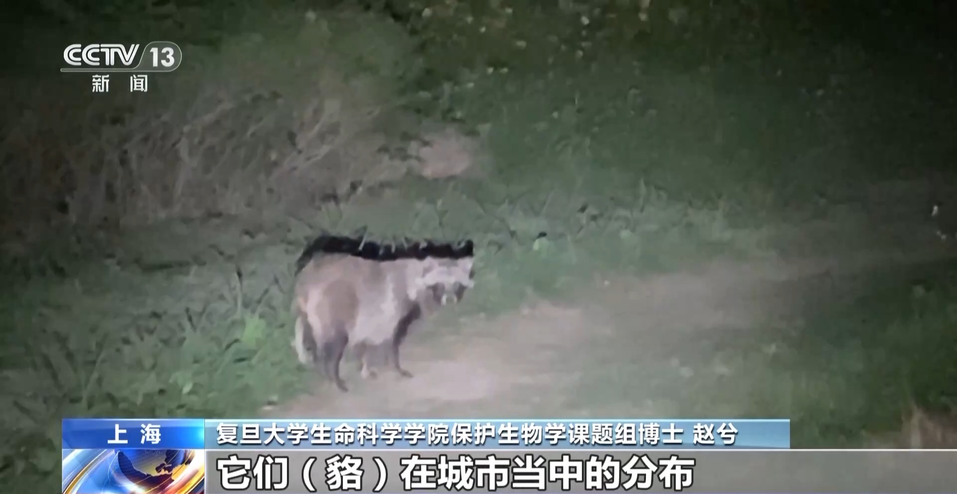 复旦大学生命科学学院保护生物学课题组博士 赵兮:城市中其实可以观察到很多野生动物,包括本土的貉,还有青岛的狗獾、南京的野猪,这些动物本身并不是外来物种,也不是从很遥远的地方迁移过来,而是它们本身就天然地分布在这些城市当中。
