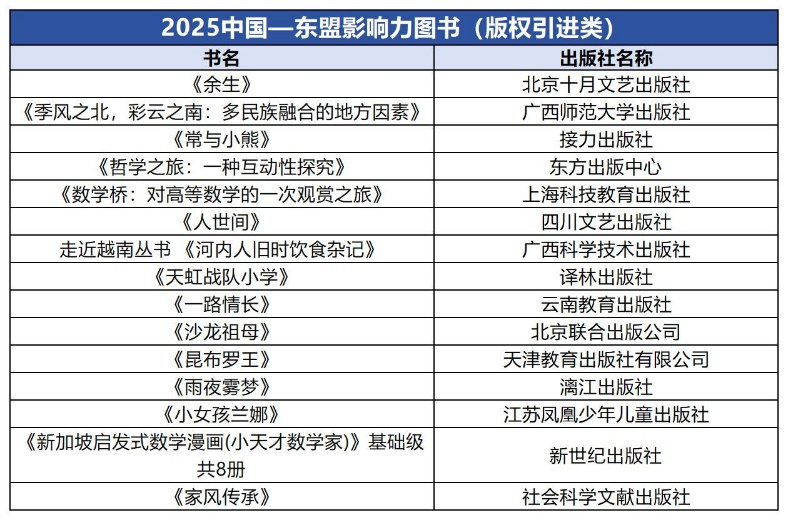 会议举行了“致敬中国—东盟影响力图书和出版机构”特别活动,发布了《2025中国—东盟图书影响力出版集团》《2025中国—东盟图书影响力出版社》《2025中国—东盟影响力图书(版权输出类)》《2025中国—东盟影响力图书(版权引进类)》《2025中国—东盟影响力图书(东盟主题类)》五个致敬名单,为这些近年来面向东盟国家在出版“走出去”“引进来”方面做出杰出贡献的出版机构和具有影响力图书的代表颁发了致敬证书。