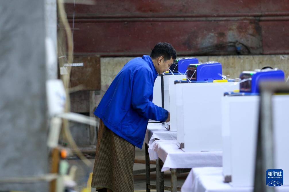 1月11日,选民在缅甸仰光省的一处投票站投票。新华社发(苗觉梭摄)