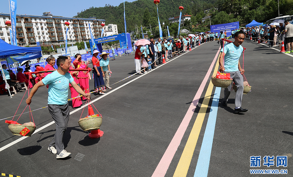 大川镇运动会挑担子比赛现场。新华网连迅摄