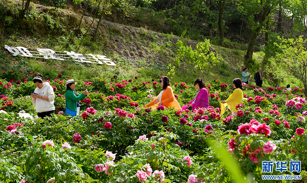 游客在茅箭区茅塔乡东沟村云上牡丹园游玩。新华网发(茅箭区融媒体中心供图)