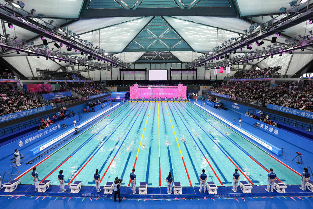 11月10日,参赛选手在女子400米自由泳预赛中。当日,第十五届全国运动会游泳项目在深圳拉开帷幕。新华社记者 夏一方 摄