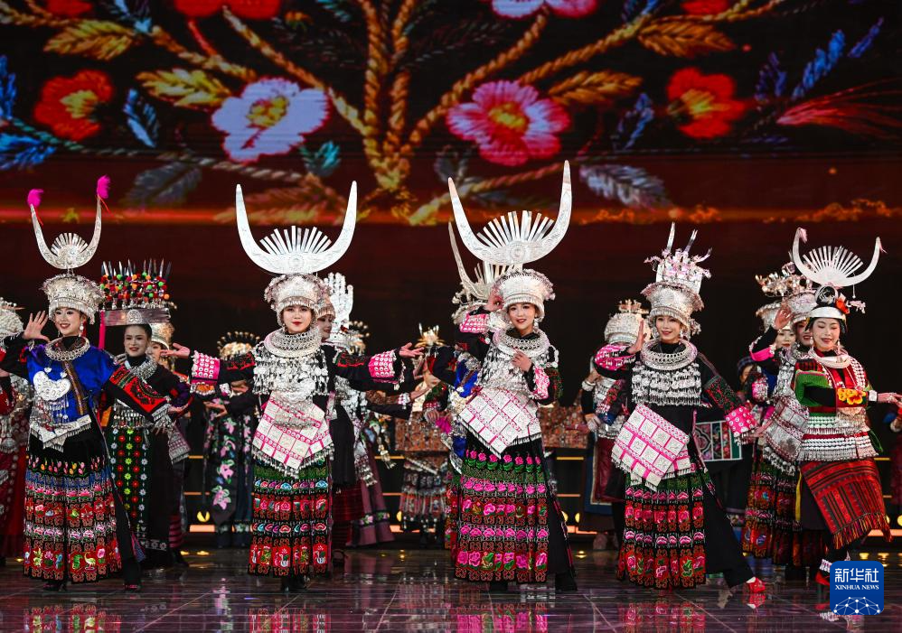 2月3日,人们在2026贵州“村晚”现场展示民族服饰。新华社记者 杨文斌 摄
