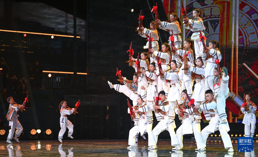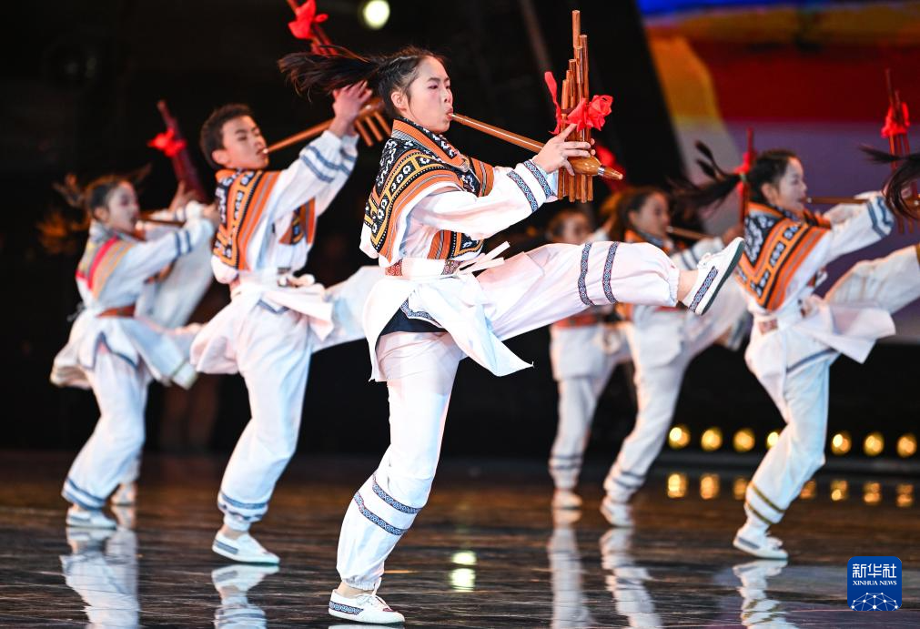 2月3日,孩子们在2026贵州“村晚”现场展示芦笙舞《滚山珠》。新华社记者 杨文斌 摄