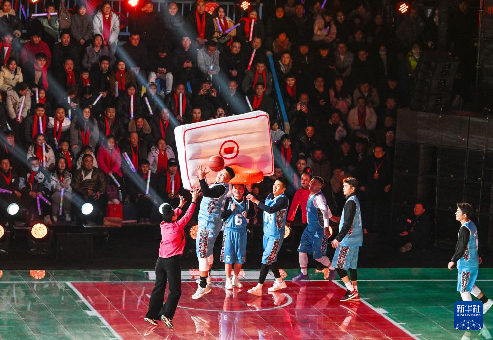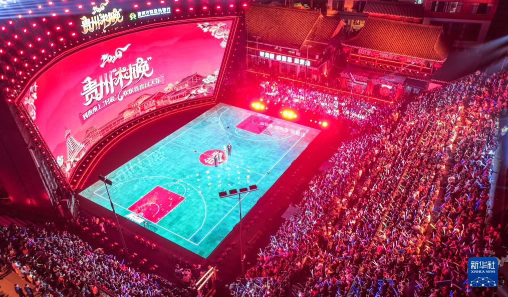 2月3日,人们在2026贵州“村晚”现场展示“姑妈”篮球。新华社记者 杨文斌 摄