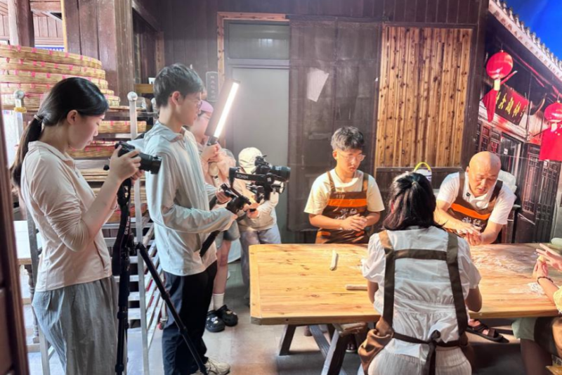浙江外国语学院颂韵流芳团队暑假期间走进衢州杜泽老街,围绕老街非遗资源开展沉浸式调研与国际传播实践。实践过程中,团队在当地媒体平台发布系列图文报道,生动呈现老街传统技艺、民俗风情与人文底蕴。