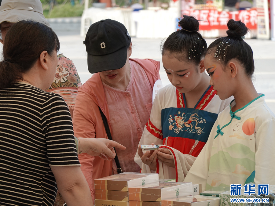 6月13日,在南阳医圣文化园,市民正在了解中医艾产品。