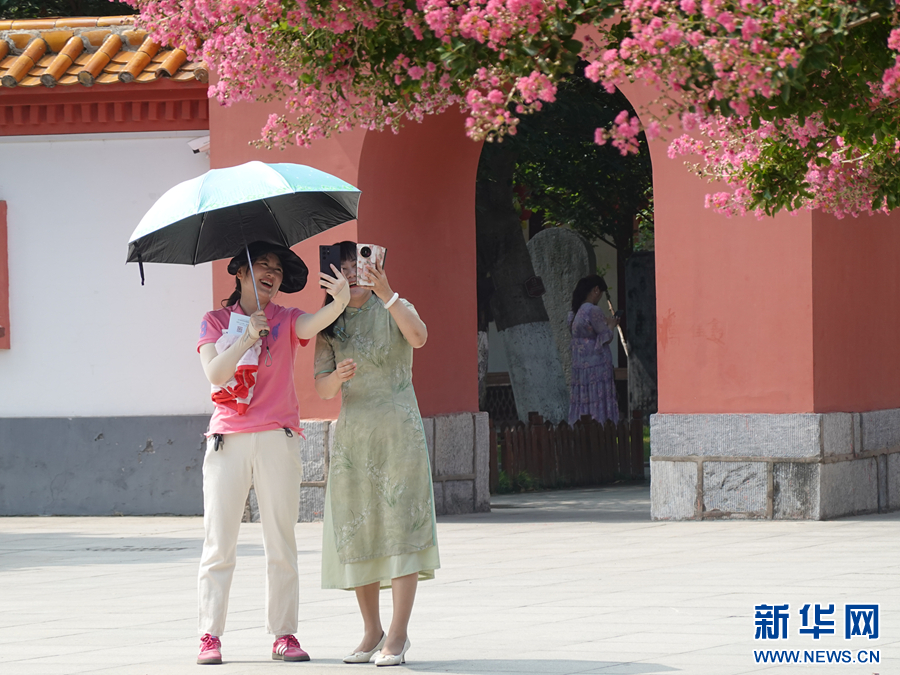 6月13日,在南阳医圣文化园,市民正在打卡拍照。