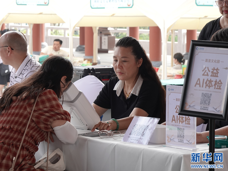 6月13日,在南阳医圣文化园,市民正在体验公益AI体检。