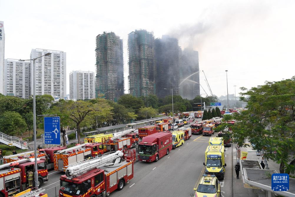 11月27日拍摄的香港大埔宏福苑火灾救援现场。新华社记者 陈铎 摄