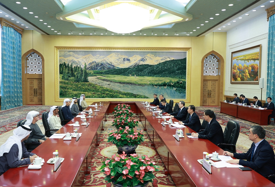 哈勒敦表示,阿联酋愿同中方坚定不移发展两国关系,持续拓展各领域合作,期待中方为促进地区和平发挥更大作用。