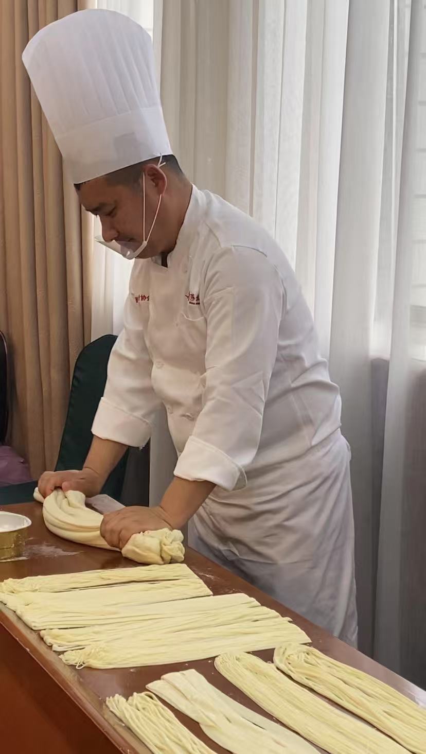 活动现场拉面师傅在展示制作青海拉面的过程。 新华网记者 吴咏玲摄