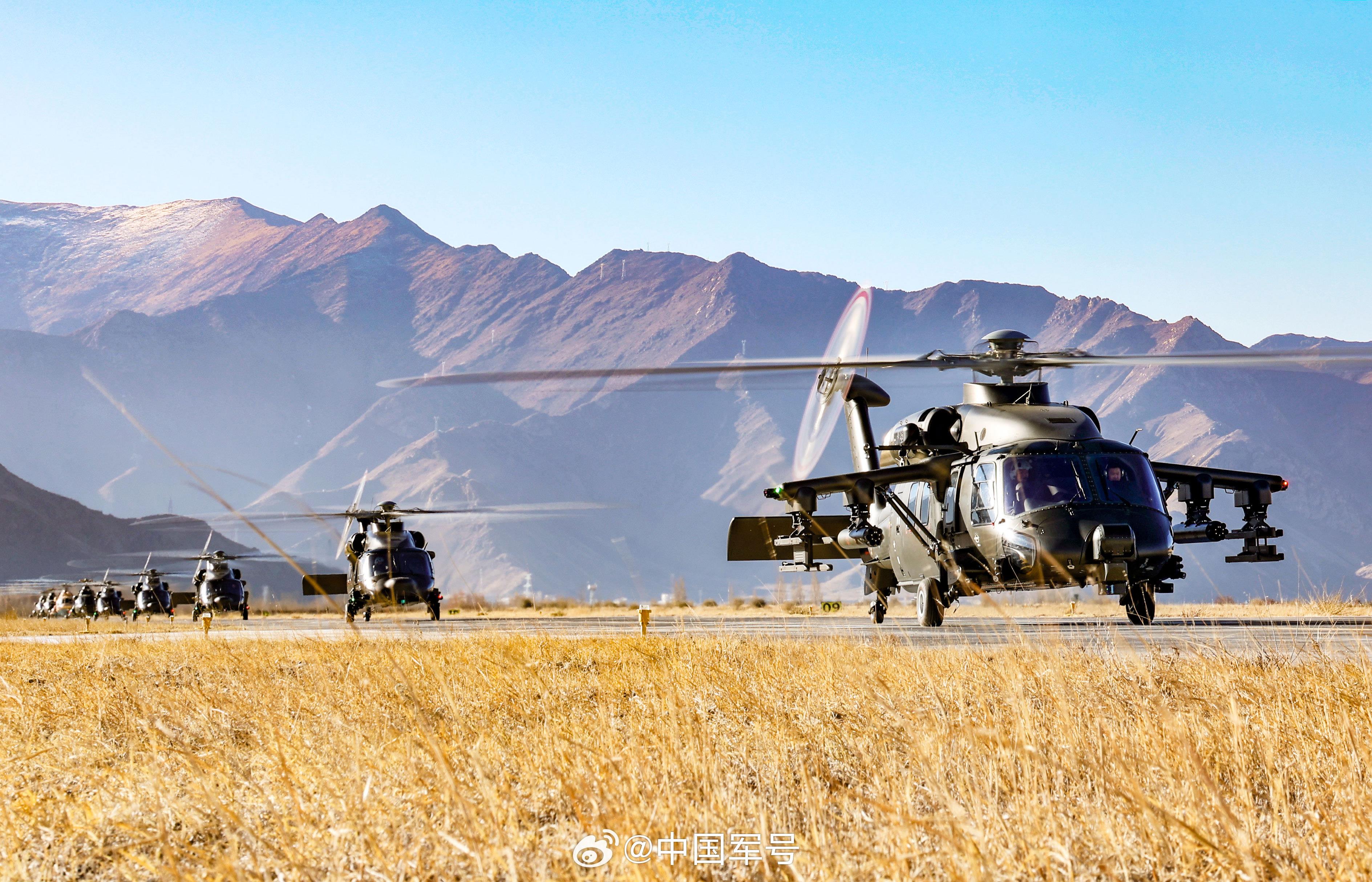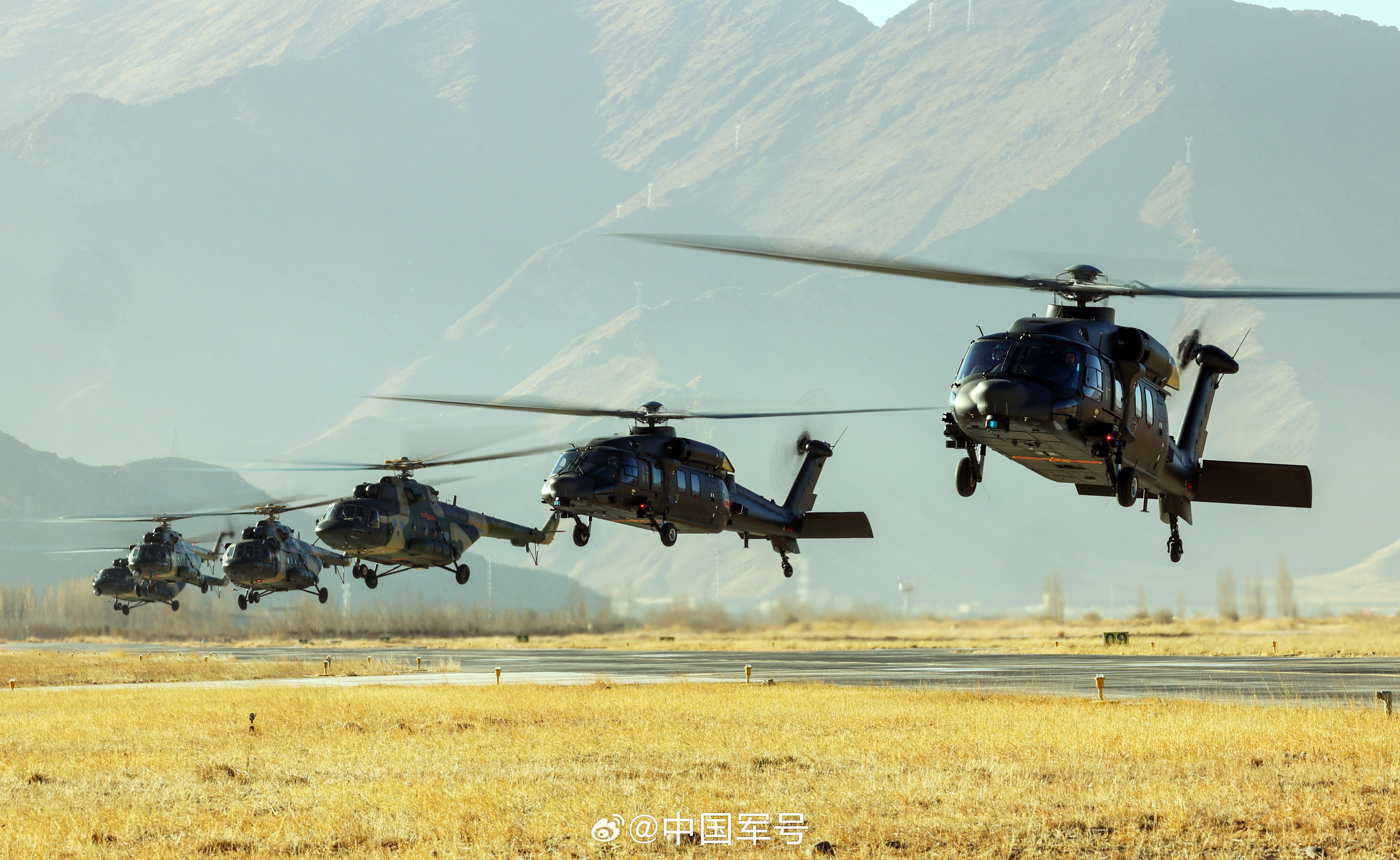 近日,西藏军区某部开展跨昼夜复杂气象条件下多机型编组、多课目协同演练。