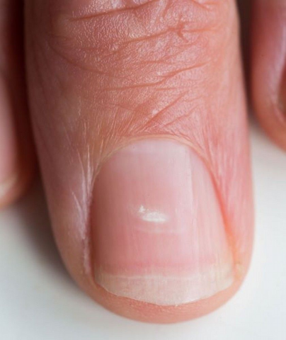 指甲白点也就是白甲,表现是指甲盖上不知不觉出现白色的、点状或不规则的斑点。随着时间还会逐渐前移。