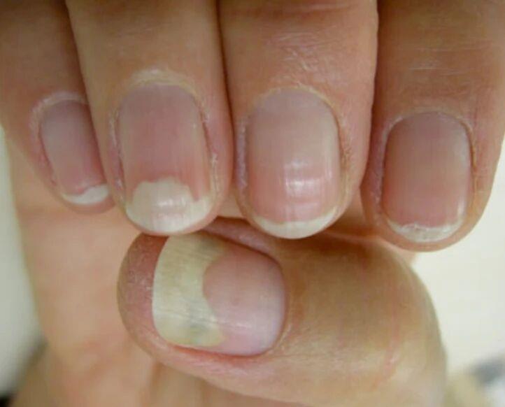 甲分离是指甲盖与甲床之间发生分离,空气进入二者之间的空隙,导致露白增多。