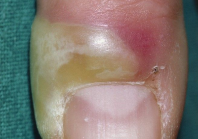 急性甲沟炎:致病菌通过倒刺、边缘皮肤损伤或慢性刺激(如水和清洁剂)造成的皮肤破损而进入组织,表现为红肿、疼痛、化脓等。