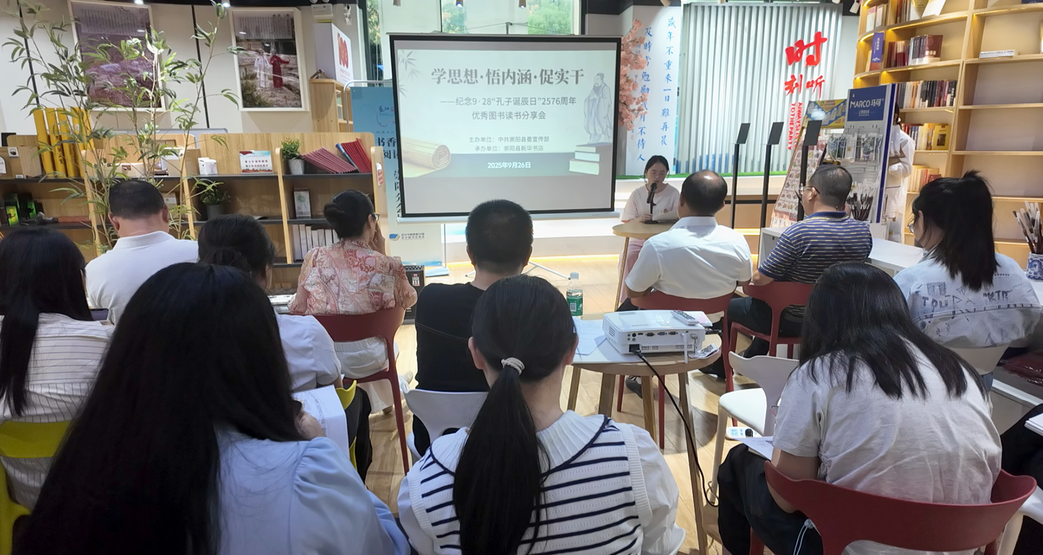 同日,崇阳县新华书店书邻小境里书香浓浓,“学思想・悟内涵・促实干”读书分享会在此举行。来自该县宣传部、团县委、教育局等单位的14名党员干部代表结合各自工作实际与所选书籍分享学习体会,既有对习近平新时代中国特色社会主义思想内涵的深刻理解,也有将理论知识与基层治理、教育发展、文化传播等具体工作相结合的实践思考。“要传承孔子诞辰承载的治学精神,更要把读书所得转化为推动发展的实干动力。”崇阳县委宣传部有关负责人表示。