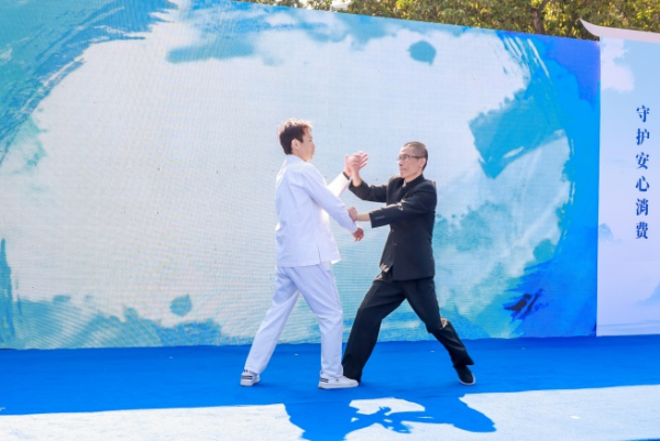 随后,咏春拳传人登台表演量身创编的“消保功夫操”,摊手揭骗局、膀手筑防线、耕手除乱象,刚劲有力的拳法搭配朗朗上口的防骗口诀,让观众看得津津有味。“这样的活动有意思,学上几招,还能记牢防骗技巧,一举两得。”现场年轻观众忍不住跟着比划起来。