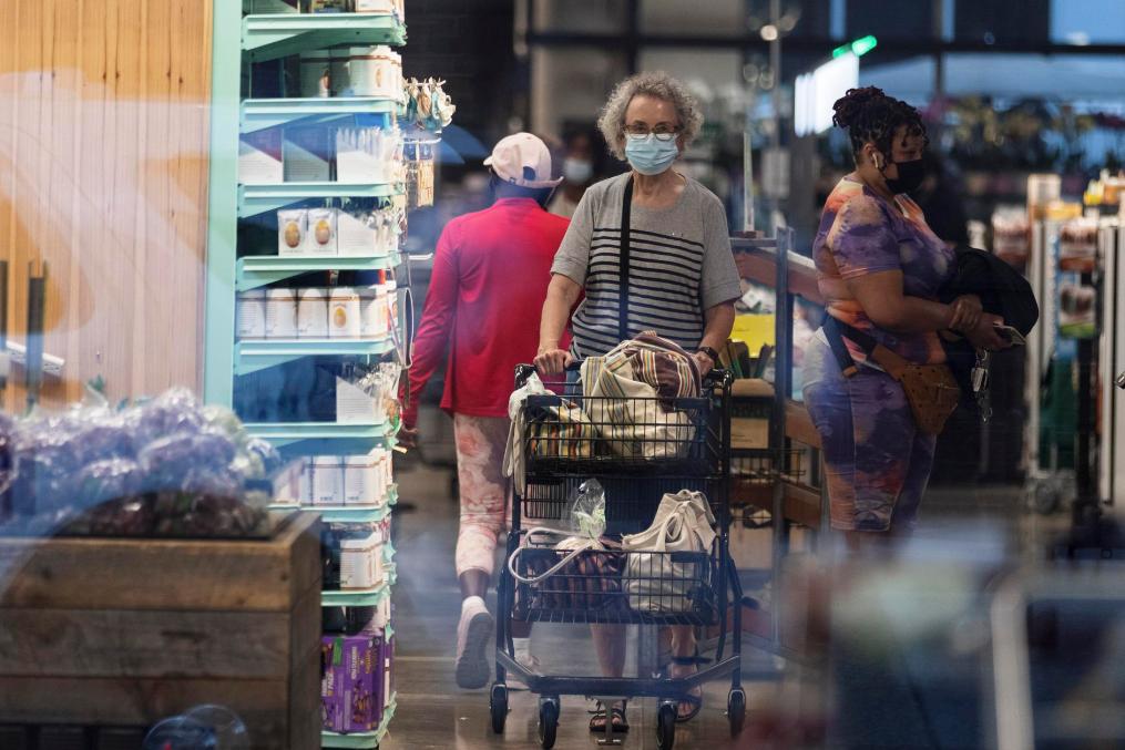 8月11日,人们在美国华盛顿一家食品超市购物。新华社发(沈霆摄)