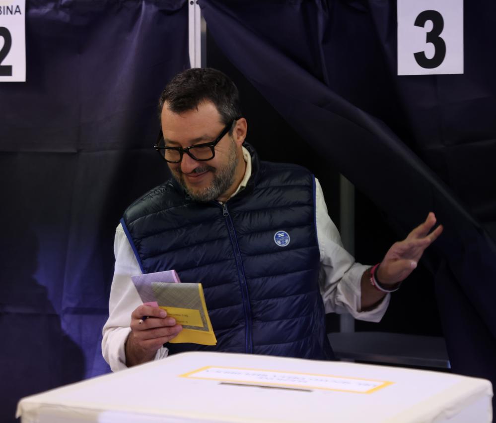 2022年9月25日,意大利联盟党党首萨尔维尼在米兰的一处投票站准备投票。新华社发