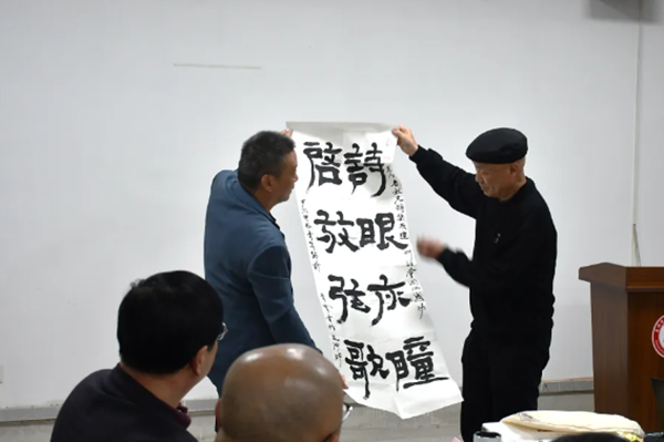 研讨会上,李云、侯卫东向孙启放赠送了书法作品。研讨会结束后孙启放向与会师生签赠了诗集。