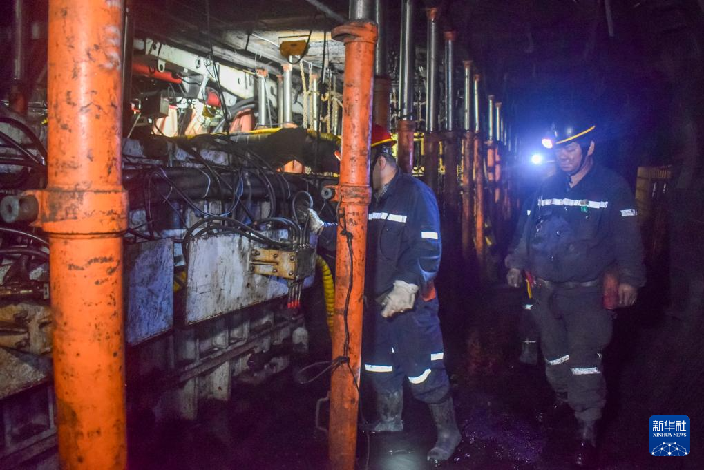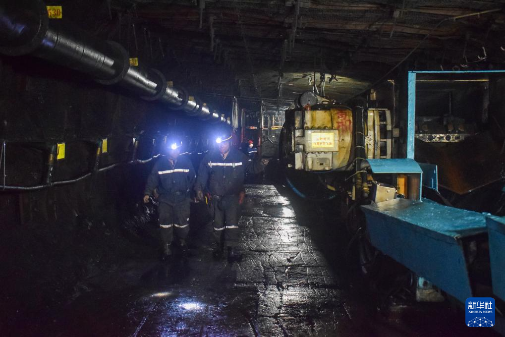 8月1日,矿工在华阳二矿矿井内巡查机械运转情况。新华社记者 李鑫 摄