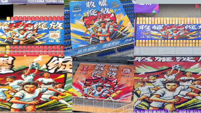 具体而言,六个赛区同时展开巨幅Tifo,图案设计融合了女足拼搏瞬间和国庆元素。这种规模的视觉统一展示,在中国女子体育赛事史上尚属首次。