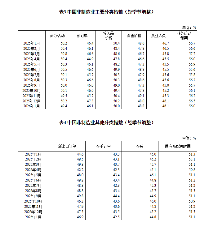 1月份,非制造业商务活动指数为49.4%,比上月下降0.8个百分点。