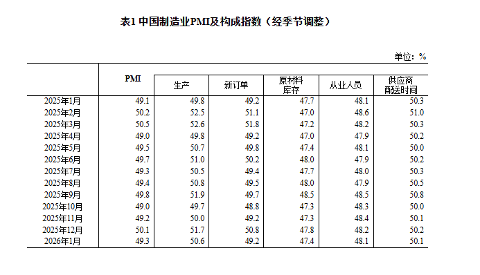 1月份,综合PMI产出指数为49.8%,比上月下降0.9个百分点,表明我国企业生产经营活动总体较上月有所放缓。
