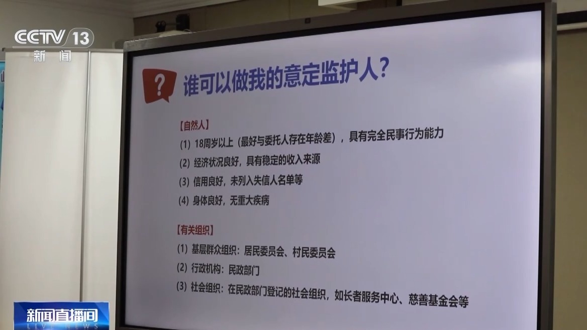 北京科技大学教授 王竹青:按照法律的规定,当这个被监护人丧失或者部分丧失行为能力的时候,意定监护才能开始生效,那么谁来确定他丧失或者是部分丧失行为能力?现在这是一个世界各地都非常难的问题。我们国家的法律规定是要由司法宣告,就是要到法院去申请认定他是一个无行为能力或者限制行为能力人,监护才能开始,所以这个门槛就会很高。