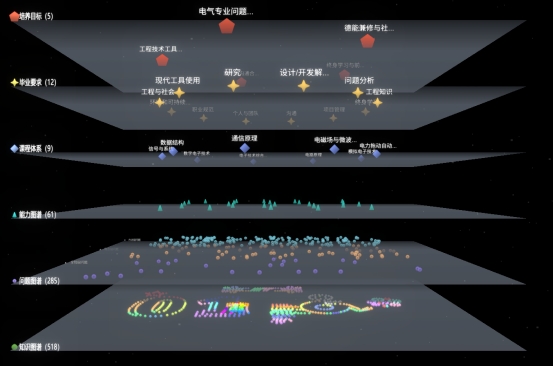 基于鄂尔多斯产业数据图谱,以及专业人才培养方案,构成AI专业图谱+项目图谱+知识图谱+能力图谱+思政图谱。其中专业图谱是依托智慧树平台,建设自动化、电气工程及其自动化和电子信息科学与技术专业人才培养的专业图谱;项目图谱:结合鄂尔多斯在能源、智能制造、智慧牧场等领域形成具有鄂尔多斯应用技术学院特色的项目图谱;课程图谱:借助AI工具及智慧树平台形成数字电子技术的知识图谱,思政图谱:将专业知识点与工匠精神、工程伦理等思政元素关联,形成课程思政图谱。采用混合式教学模式,结合智慧树,设计“课前AI导学-课中项目实践-课后思政反思”的教学流程,借助AI技术实现专业技术维度、工程素养维度、职业价值观维度的完整评价,并使用AI学情诊断技术为学生提供学习路径的个性化学习服务。