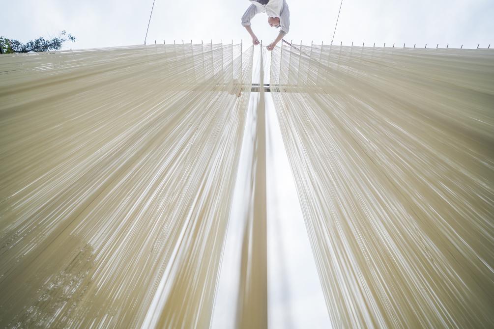 2月22日,在四川省德阳市中江县觉慧村,村民在晾晒手工面条。