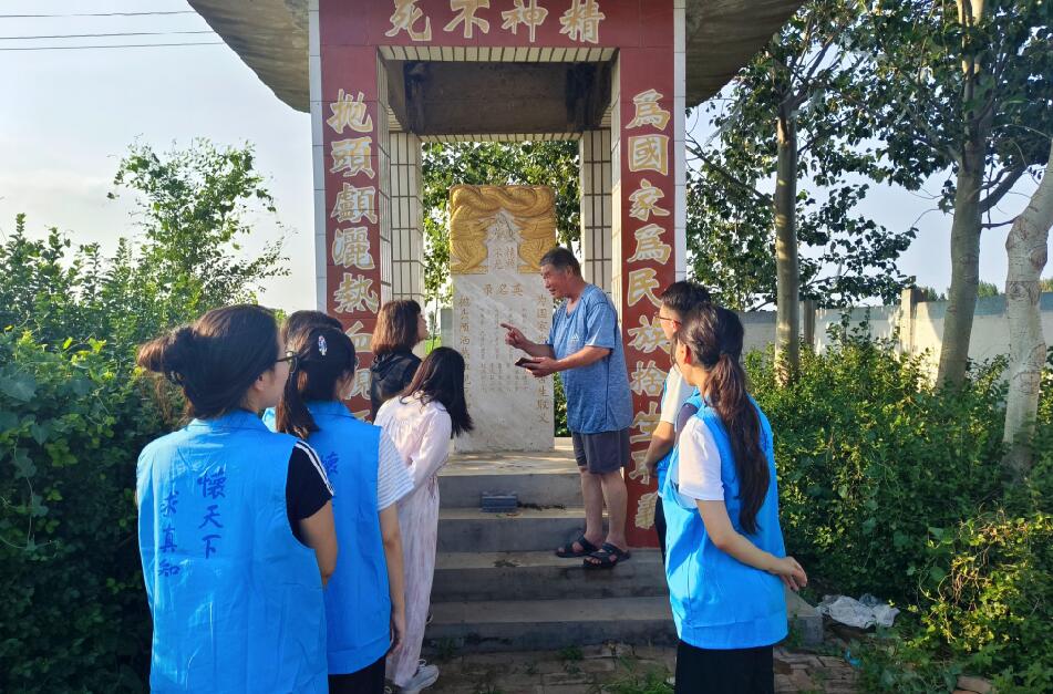 实践队追寻历史足迹,赴西张保村探访枣树林遗址、无名烈士墓、《冀中导报》旧址,与老党员座谈,赴邹村烈士纪念碑、沃地村李一烈士墓瞻仰。齐振英、赵桂梅和西张保村老支书张铁柱在枣树林遗址处齐上一堂“革命旧址中的思政课”,阐释了铭记历史、传承精神、牢记使命的思政教育主题。