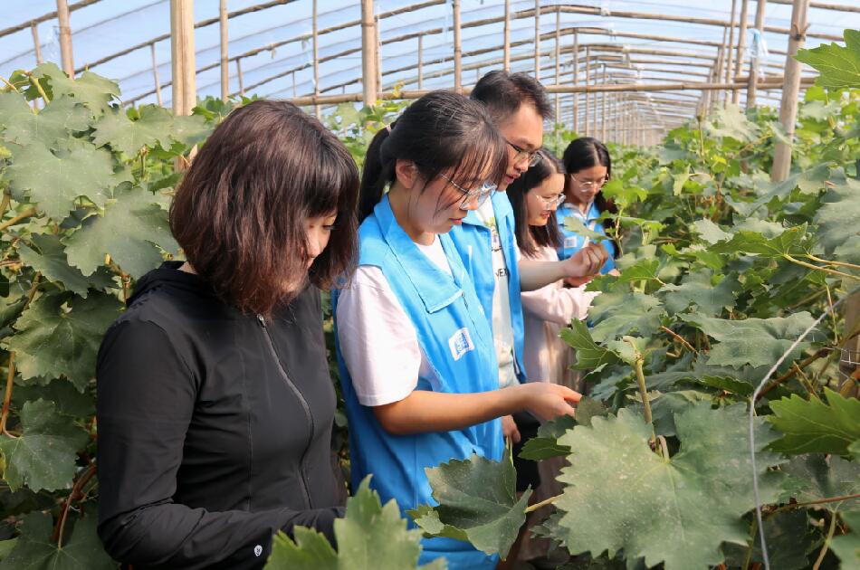 实践队深入南张保村、许张保村的现代化葡萄种植基地,调研沃地村“大棚种植+线缆产业”双轨发展模式。赵桂梅结合大棚种植的科学管理模式和高效生产实践,讲授了一堂“生态葡乡间的思政课”,引导同学们对比科技农业与传统耕作,解析“特色产业+多元经营”模式的增收实效。队员郭志蕊做理论宣讲,讲述科技赋能农业提质增效和多元产业助力乡村振兴的真切感受。实践队将葡萄种植大棚的种植环境及耕作模式录制成短视频,在抖音、微信视频号等新媒体平台上广泛传播,为当地的乡村振兴贡献了青年力量。