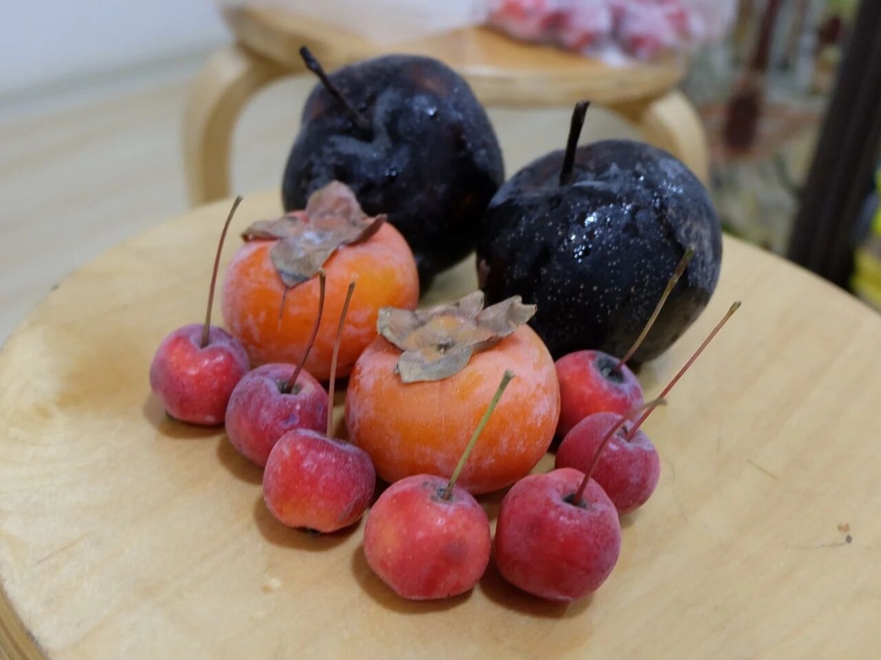 冻梨、冻柿子、冻花红(冻海棠果)是常见的“冻果三件套”。
