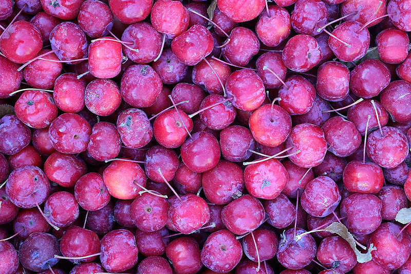 海棠果本身酸味浓重,很多人不愿意直接食用,但冻花红(冻海棠果)却酸甜可口。果子经低温冷冻,酸涩转化为甘甜,质地更软糯,口感像冻山楂,还夹杂着海棠果独有的香气。