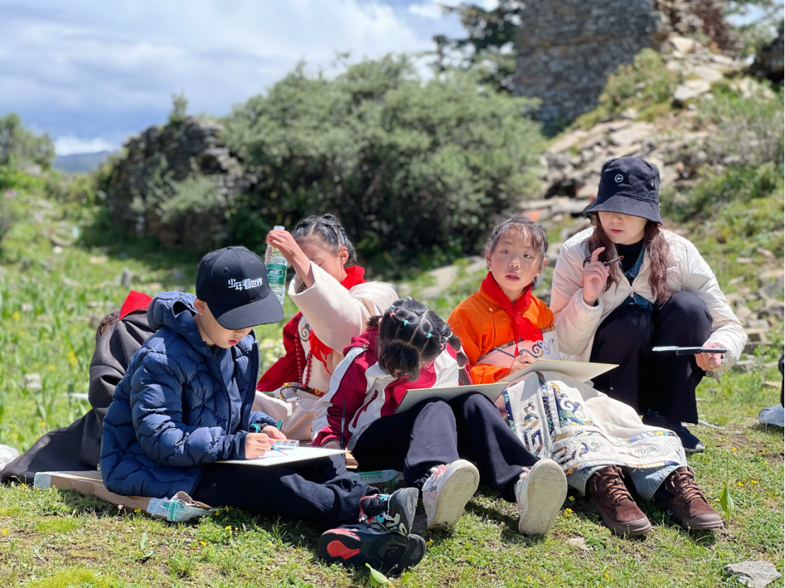 少年们画山湖美景、画历史遗迹,他们以画布为媒,将千年白狼文明与高原壮美风光凝练成一幅跨越时空的艺术画卷。