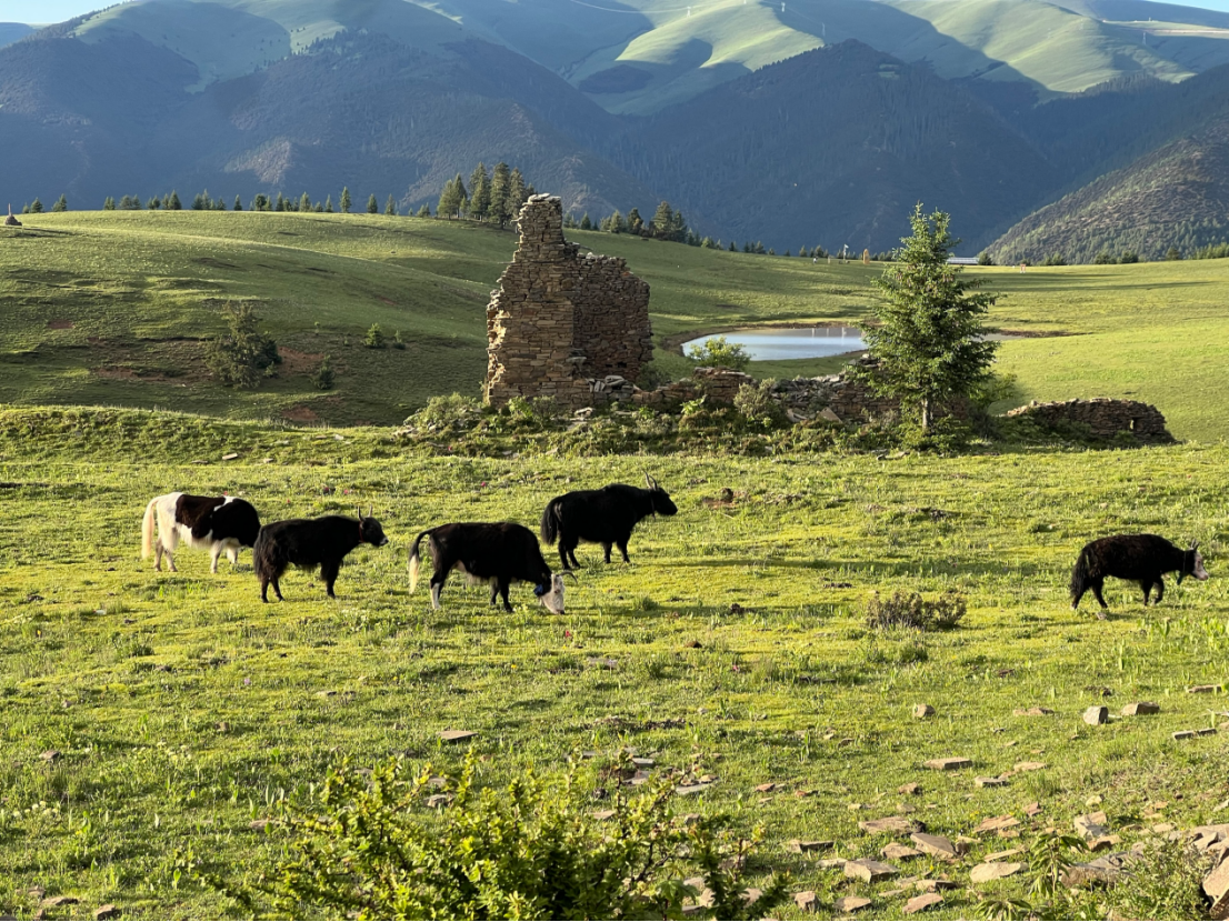 翻越“天路十八弯”,少年们登上海拔近4000米的郭岗顶。这里被誉为“川西秘境”,日月双湖倒映着雪山,成群的牦牛漫步其间。这里有古建筑遗址,曾出土大量白狼国陶俑,具有重要的学术研究价值。
