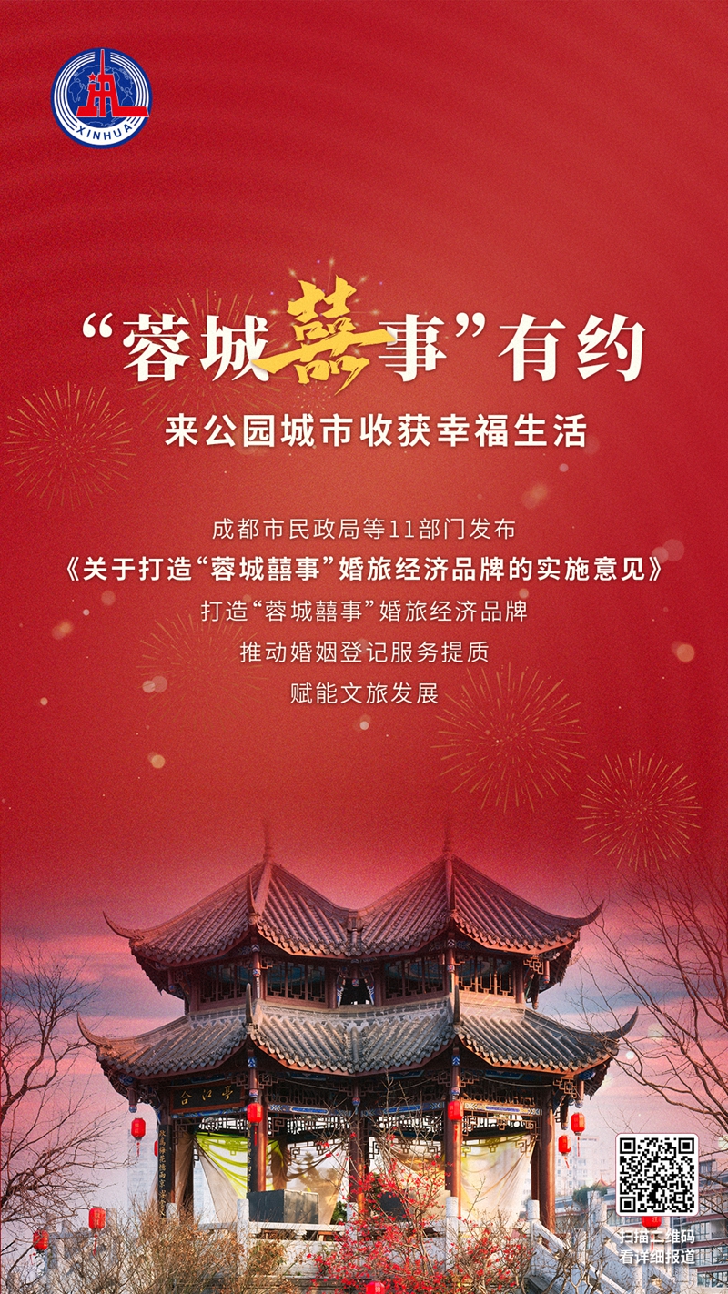 新华社客户端成都9月25日电(记者董小红)近期,成都市民政局等11部门发布了《关于打造“蓉城囍事”婚旅经济品牌的实施意见》,积极推动婚姻登记服务提质赋能文旅发展,打造“蓉城囍事”婚旅经济品牌。