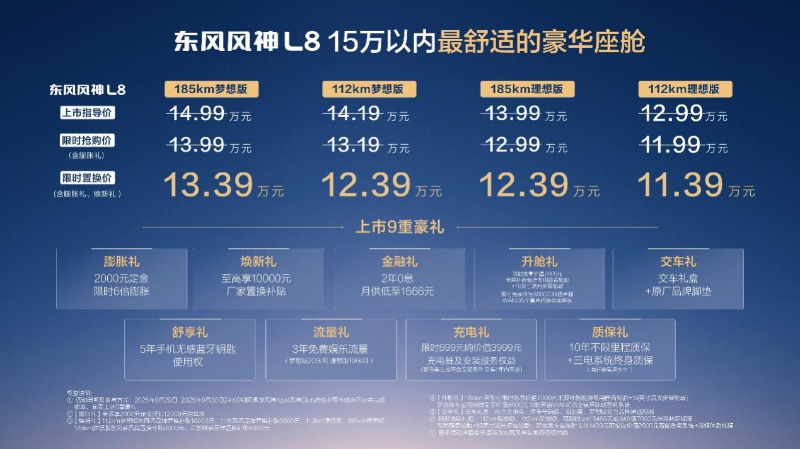 8月29日,在第28届成都车展上,东风新旗舰东风风神L8正式宣布上市,限时置换价仅需11.39万元起(可叠加享受国/地补)。