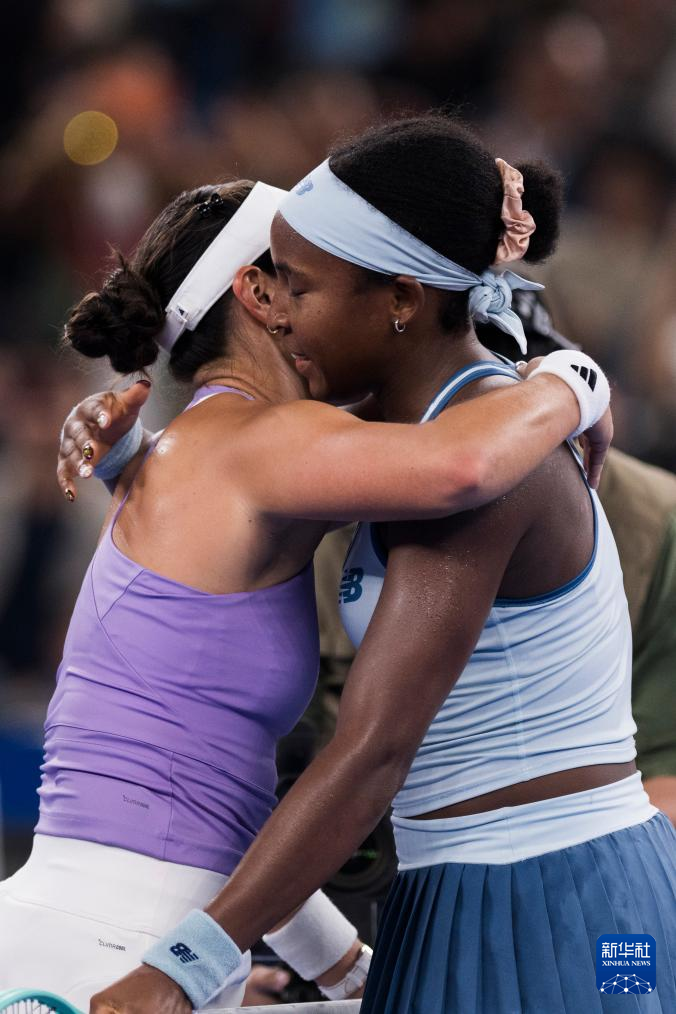 10月12日,高芙(右)和佩古拉在比赛结束后拥抱。新华社记者 伍志尊 摄