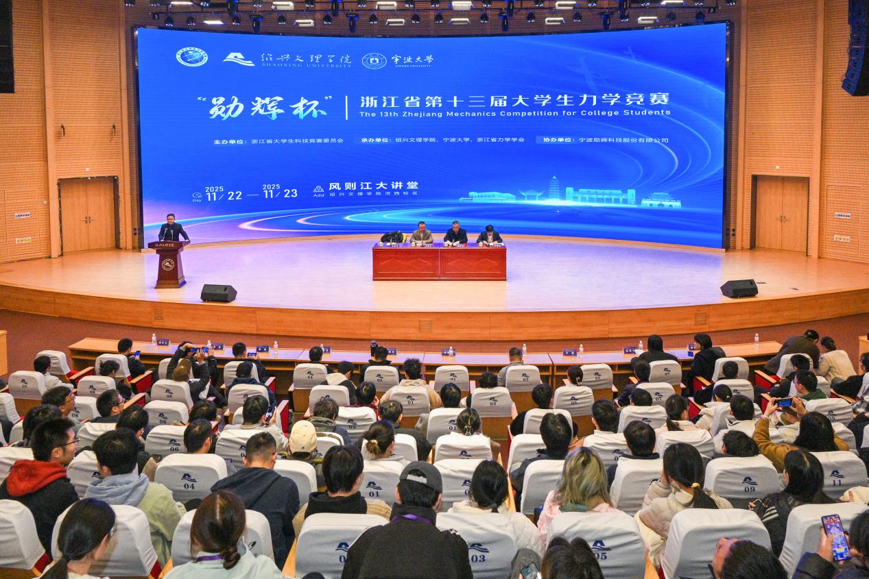 11月23日,“勋辉杯”浙江省第十三届大学生力学竞赛在绍兴文理学院开赛。来自宁波大学、浙江工业大学、绍兴文理学院等29家省内高校的91支队伍同台竞技,展现力学专业能力与实践创新实力。
