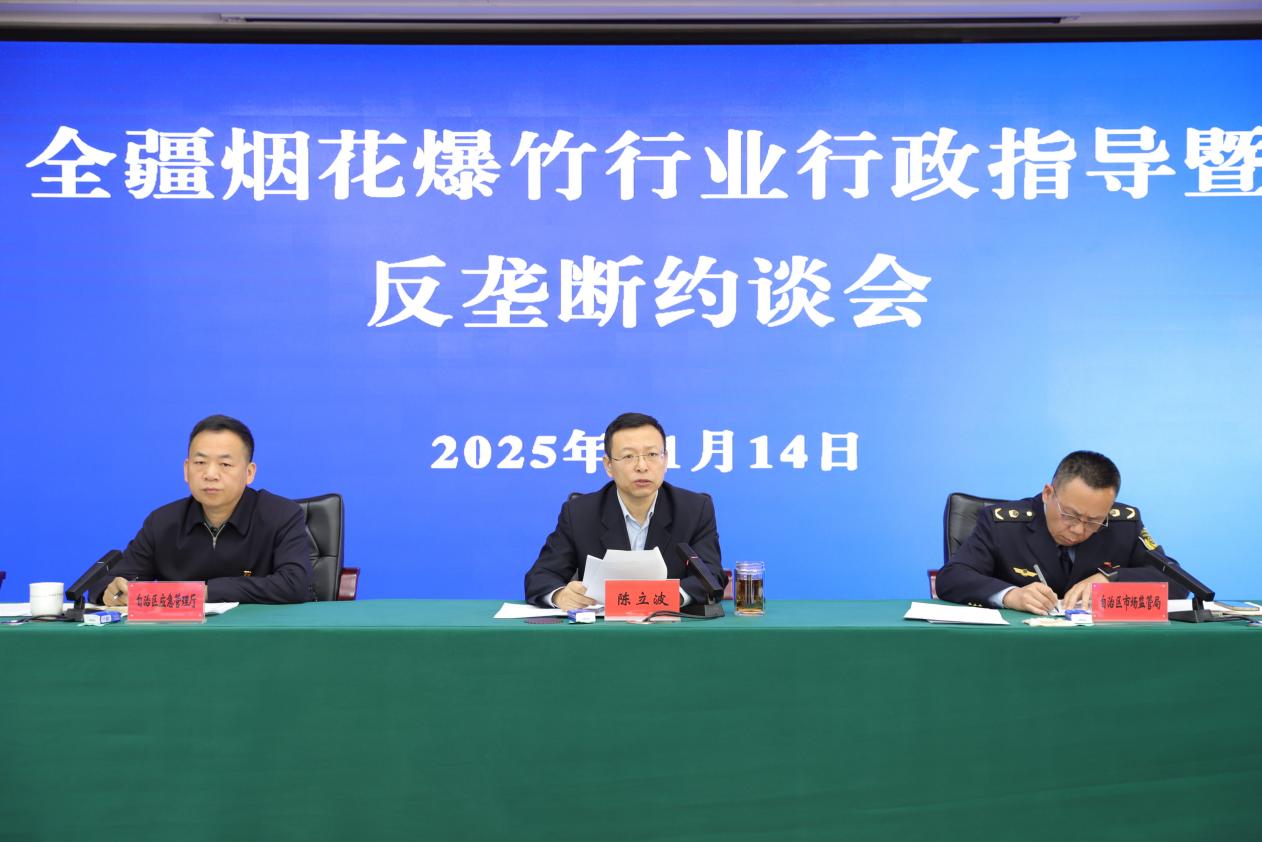 为进一步规范行业协会经营行为,切实维护公平竞争、安全有序的市场环境,11月14日,自治区市场监管局联合自治区公安厅、自治区应急管理厅、兵团市场监管局、兵团公安局、兵团应急管理局召开全疆烟花爆竹行业行政指导会暨反垄断约谈视频会。自治区市场监管局副局长陈立波出席会议并讲话。