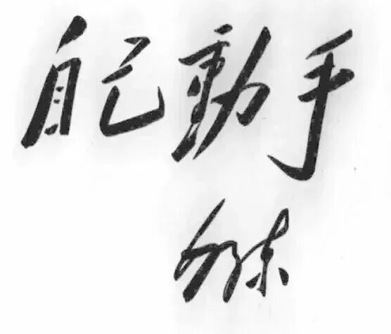 毛泽东为影片《生产与战斗结合起来》题写“自己动手”和“丰衣足食”。新华社发(资料照片)
