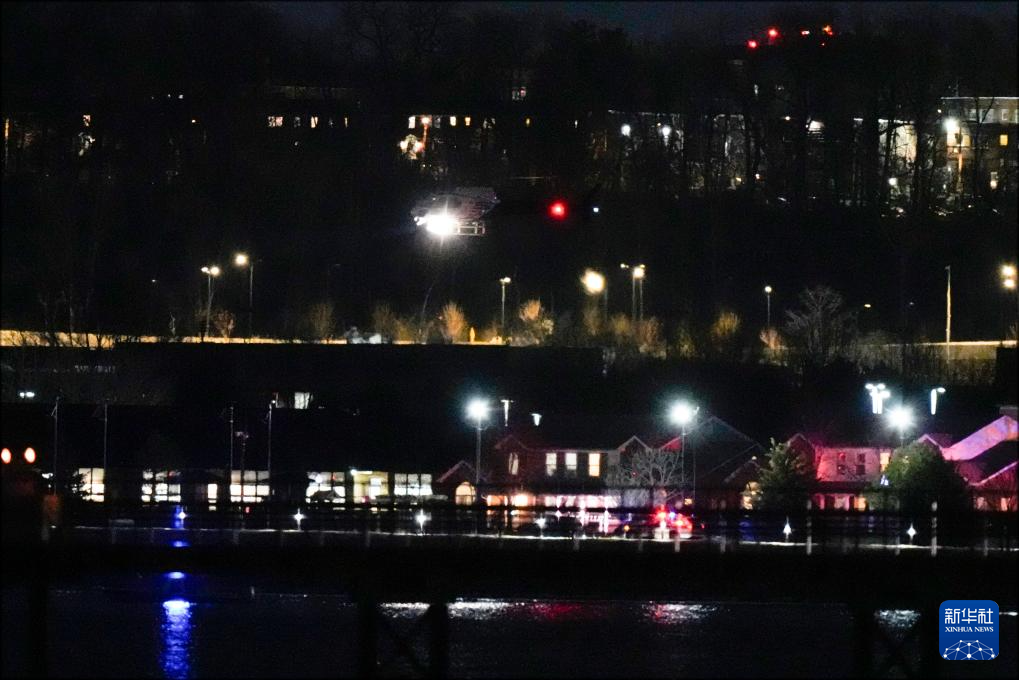 1月29日,一架直升机在美国华盛顿里根国家机场附近的波托马克河上空参与搜救。新华社/美联