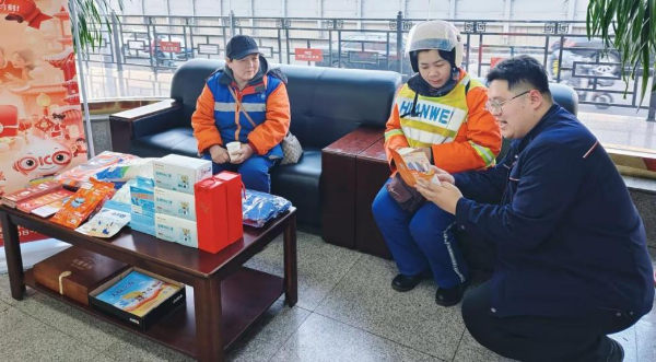 在新疆,人保财险志愿者与交警、加油站员工组成“护航服务小队”,在加油站和高速服务区,既提醒游客防范电信诈骗,也讲解道路安全与车险理赔知识。浙江嘉兴的高铁站和汽车站里,人保财险工作人员针对“车票退改签诈骗”“冒充客服”等春运高发骗局的提示,随着宣传折页送到了旅客手中,反洗钱知识也得到了普及。在山西,人保财险为外卖骑手、环卫工人等“城市守护者”设立的“新市民关爱驿站”,不仅提供了热水、休息区和暖心物资,也送上了金融维权与防诈骗知识。湖南的人保财险宣传人员则在交通枢纽,向过往司机重点揭示非法集资的套路,提醒大家警惕“高收益”陷阱,守护好辛苦一年的劳动所得。