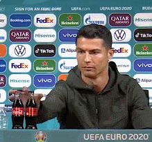 最近,在欧洲杯的一场新闻发布会上,C罗将面前的可乐拿开,并且表示应该喝水。